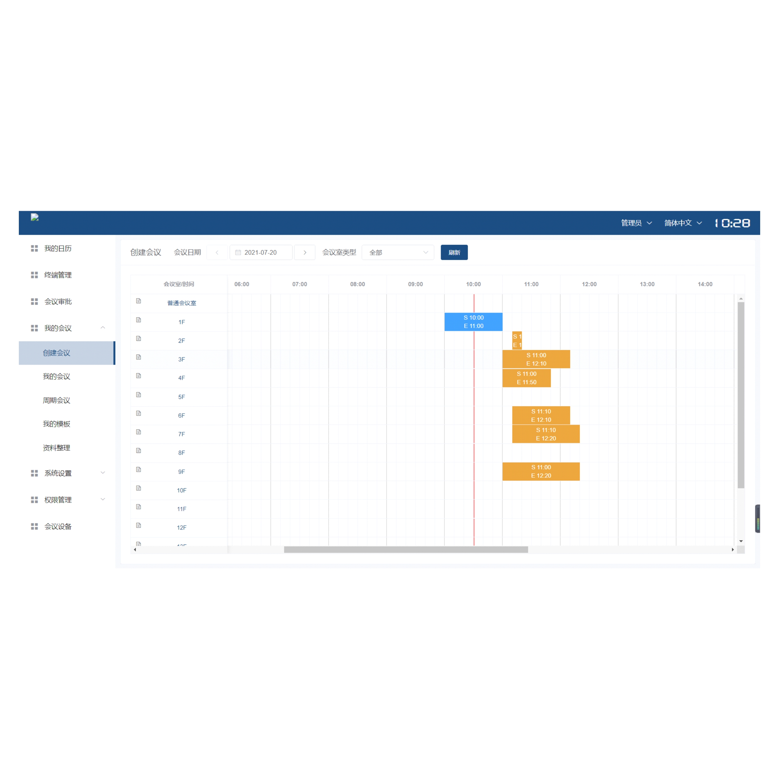 (26) 會(huì)議室平面圖功能,使用真實(shí)平面圖顯示會(huì)議室的實(shí)際位置,通過顏色區(qū)分會(huì)議室當(dāng)前狀態(tài);