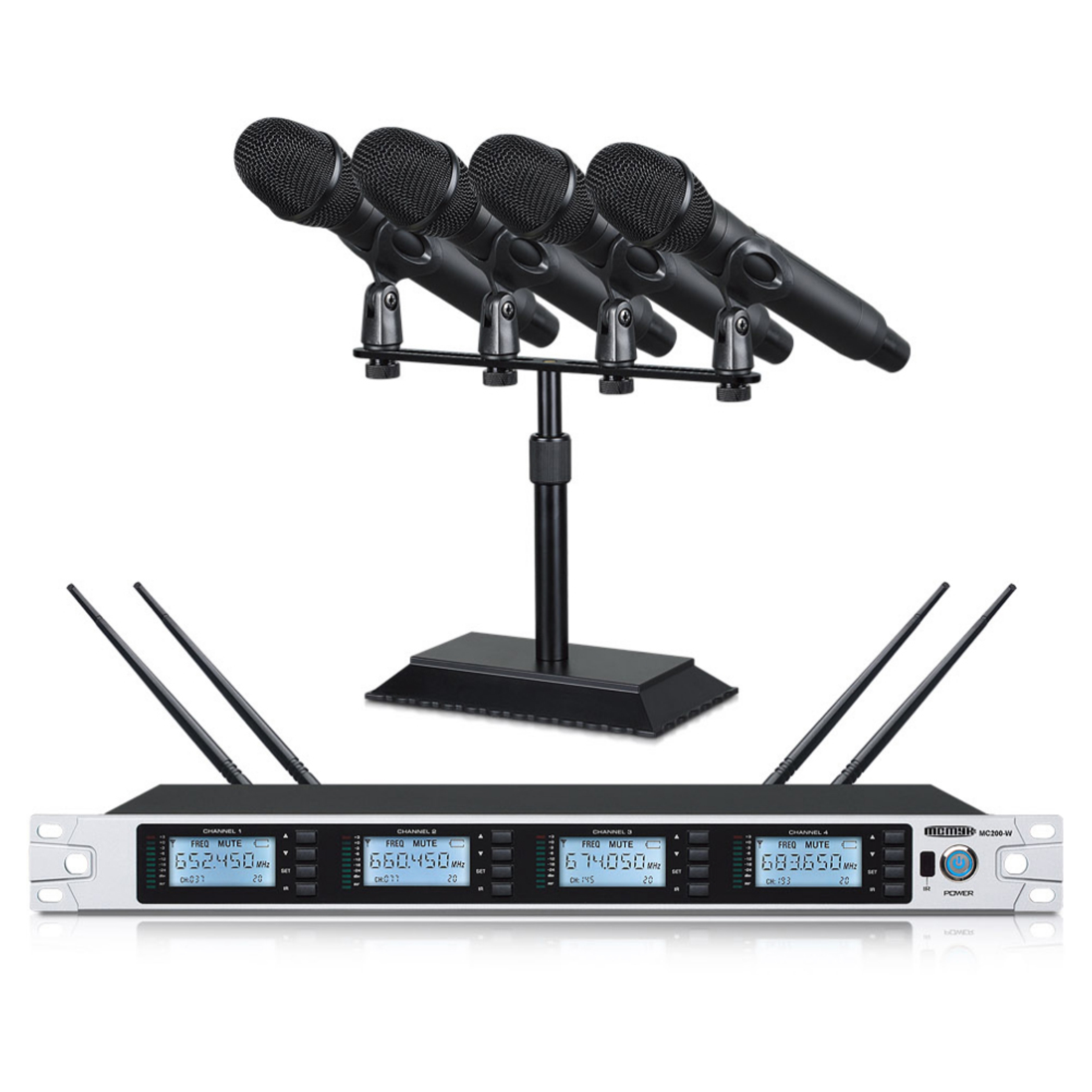 一拖四無線演講話筒 A-200-W產(chǎn)品描述:內(nèi)置大振膜電容式拾音頭,超遠(yuǎn)的拾音距離,高拾音靈敏度,出色的音質(zhì),使您的講話或者唱歌都能輕松自如。23級(jí)電子音量控制,簡約搭配具備先進(jìn)的數(shù)字ID導(dǎo)頻功能,徹底杜絕干擾和竄頻現(xiàn)象200組可選頻點(diǎn)、話筒通用,抗干擾能力強(qiáng)設(shè)有回輸嘯叫抑制減弱功能,能有效減少回輸嘯叫數(shù)控雕刻高檔工藝鋁合金底,穩(wěn)重大方。上下伸縮360度左右調(diào)節(jié)支架,滿足演講者站立或者就座演講???/p>
